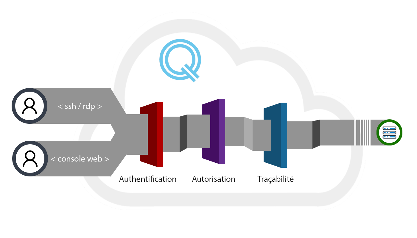 vous permet de sécuriser l'accès à vos serveur depuis l'intérieur ou l'extérieur de votre infrasturcture et ainsi la protéger contre les cyber-risques. Vous pouvez gérer qui, quand et comment accèder à une ou plusieurs ressources. De plus vous avez une traçabilité totale des commandes et des actions réalisées.
